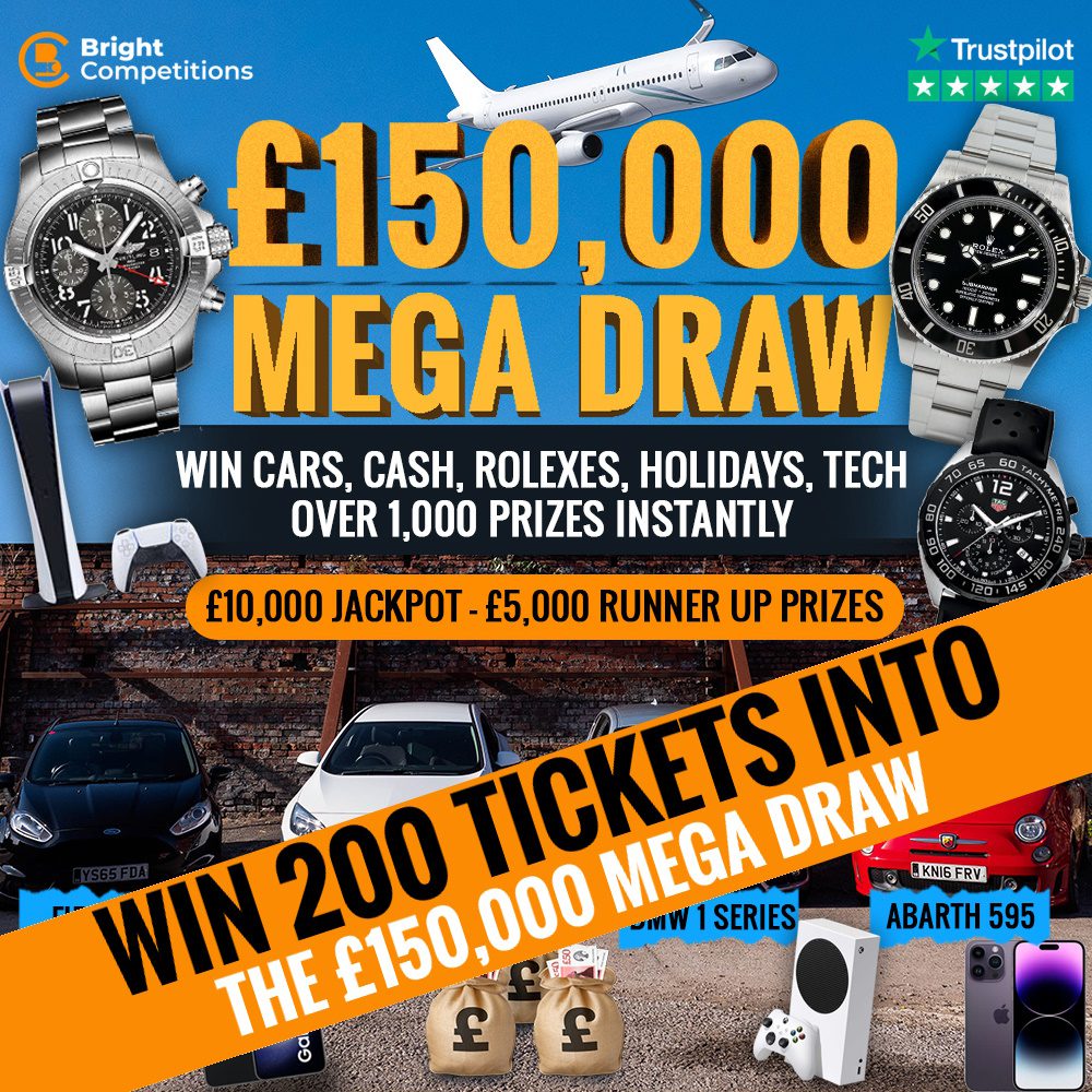 Win 200 Tickets into the £150,000 Mega Instant Win Competition