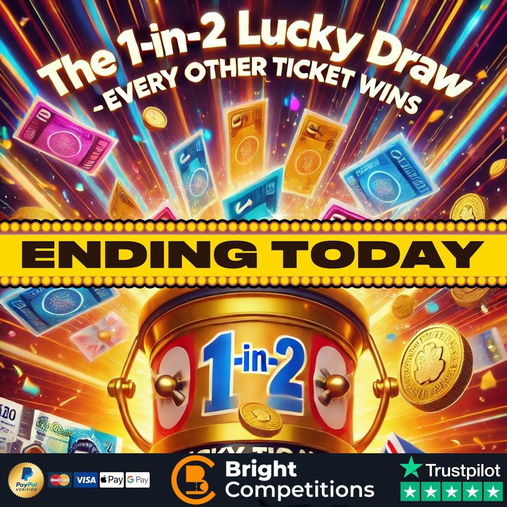 1in2 Lucky Draw – Every OTHER Ticket is a Winner! & 5x £100 Cash Jackpots
