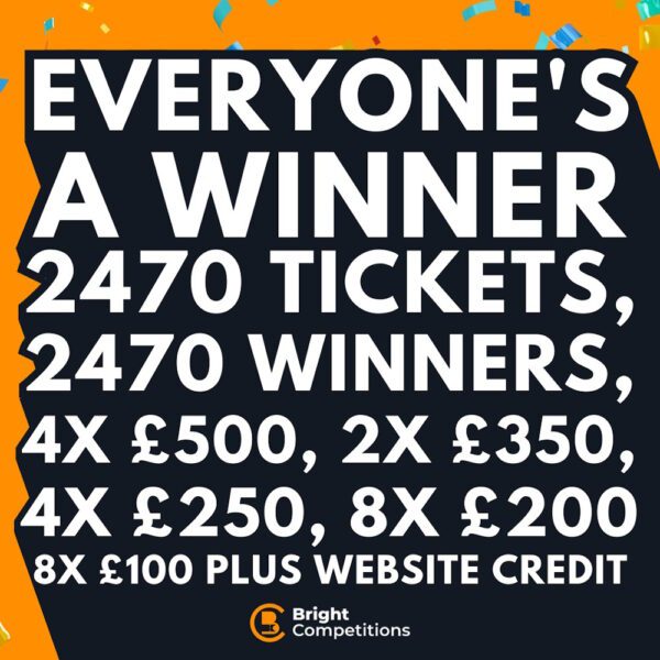 This competition is open to GB residents aged 18 or over. You can enter this competition up to 200 times. This competition will close at 8:30 pm on November 30, 2023. The LIVE draw for this competition will be at 9:00 pm on November 30, 2023. You can watch the draw LIVE on Facebook, YouTube and Instagram. On entering the competition / placing your order you will receive your ticket numbers via email. These will also be visible on the My Account section of our website. We will also be posting updates on this competition and future competitions on our Facebook page so make sure you are following and our posts are set to show at the top of your newsfeed! If entering our competitions either by post or online please ensure you have read and agree to our terms and conditions, if your entries do not comply with the terms they will not be included in the draw. Please note you must sign up for an account before making your entry! Entries without an account cannot be processed. You must add your billing address to your account in order for your entries to be processed. To enter for free, please see our terms and conditions The Winner hereby agrees that all Prizes are subject to and are conditional on the terms and conditions of the Promoter, Prize provider, manufacturer and/or supplier and/or anyone that is involved in the provision or delivery of the Prize to the Winner.