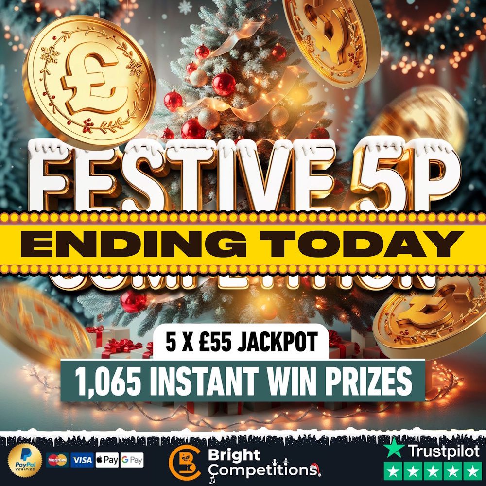 This competition is open to GB residents aged 18 or over. You can enter this competition up to 6000 times. This competition will close at 8:00 pm on December 28, 2025. The LIVE draw for this competition will be at 8:30 pm on December 28, 2025. You can watch the draw LIVE on Facebook, YouTube and Instagram. On entering the competition / placing your order you will receive your ticket numbers via email. These will also be visible on the My Account section of our website. We will also be posting updates on this competition and future competitions on our Facebook page so make sure you are following and our posts are set to show at the top of your newsfeed! If entering our competitions either by post or online please ensure you have read and agree to our terms and conditions, if your entries do not comply with the terms they will not be included in the draw. Please note you must sign up for an account before making your entry! Entries without an account cannot be processed. You must add your billing address to your account in order for your entries to be processed. To enter for free, please see our terms and conditions The Winner hereby agrees that all Prizes are subject to and are conditional on the terms and conditions of the Promoter, Prize provider, manufacturer and/or supplier and/or anyone that is involved in the provision or delivery of the Prize to the Winner.