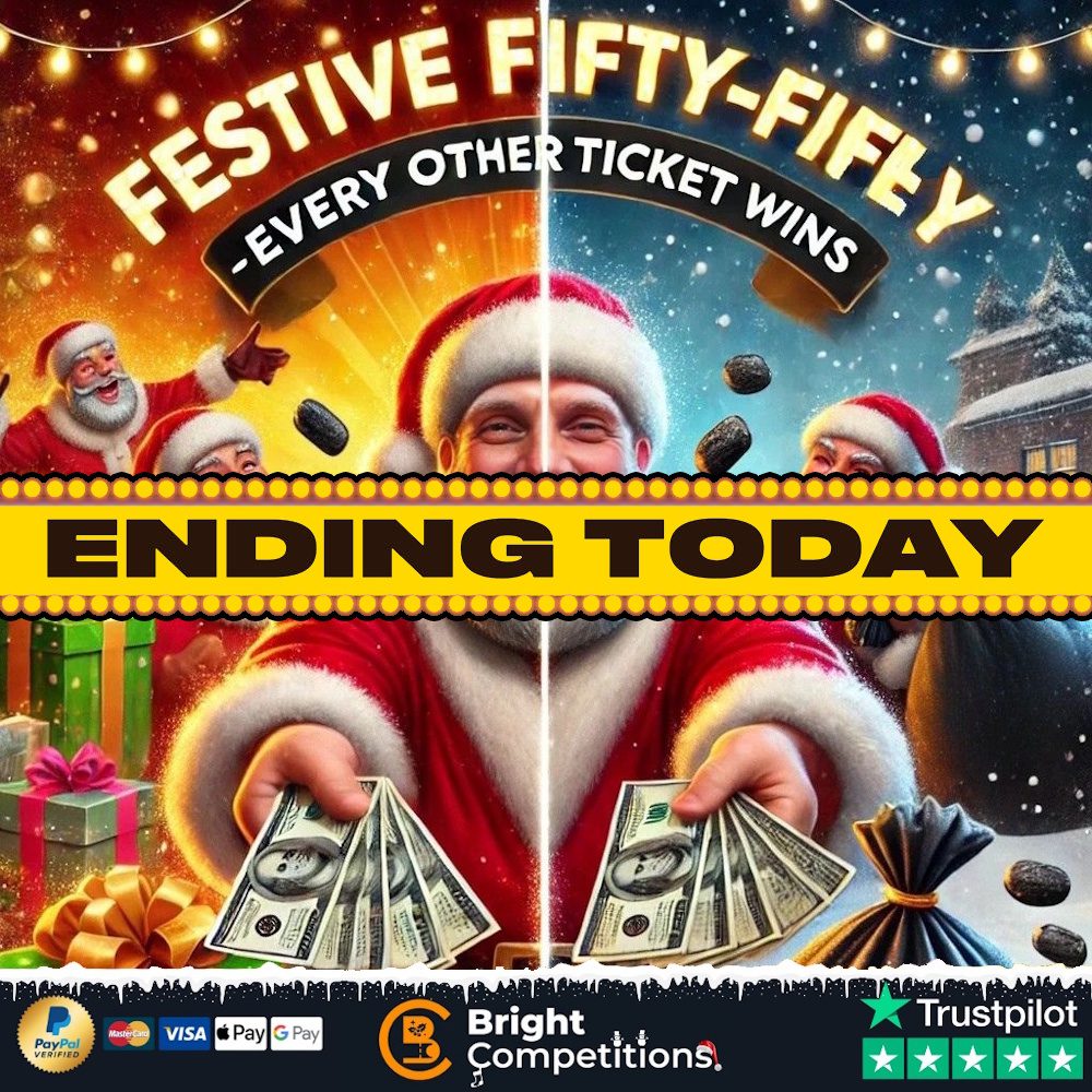 This competition is open to GB residents aged 18 or over. You can enter this competition up to 200 times. This competition will close at 8:30 pm on December 18, 2025. The LIVE draw for this competition will be at 9:00 pm on December 18, 2025. You can watch the draw LIVE on Facebook, YouTube and Instagram. On entering the competition / placing your order you will receive your ticket numbers via email. These will also be visible on the My Account section of our website. We will also be posting updates on this competition and future competitions on our Facebook page so make sure you are following and our posts are set to show at the top of your newsfeed! If entering our competitions either by post or online please ensure you have read and agree to our terms and conditions, if your entries do not comply with the terms they will not be included in the draw. Please note you must sign up for an account before making your entry! Entries without an account cannot be processed. You must add your billing address to your account in order for your entries to be processed. To enter for free, please see our terms and conditions The Winner hereby agrees that all Prizes are subject to and are conditional on the terms and conditions of the Promoter, Prize provider, manufacturer and/or supplier and/or anyone that is involved in the provision or delivery of the Prize to the Winner.
