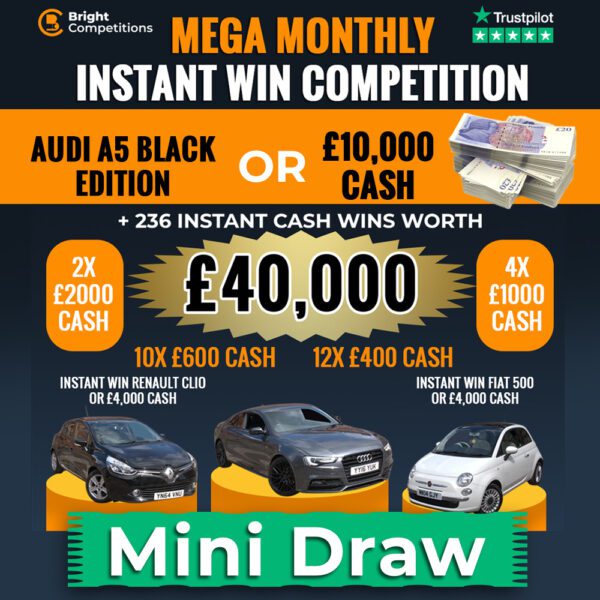 This competition is open to GB residents aged 18 or over. You can enter this competition up to 5 times. This competition will close at 8:30 pm on June 27, 2023. The LIVE draw for this competition will be at 8:30 pm on June 27, 2023. You can watch the draw LIVE on Facebook, YouTube and Instagram. On entering the competition / placing your order you will receive your ticket numbers via email. These will also be visible on the My Account section of our website. We will also be posting updates on this competition and future competitions on our Facebook page so make sure you are following and our posts are set to show at the top of your newsfeed! If entering our competitions either by post or online please ensure you have read and agree to our terms and conditions, if your entries do not comply with the terms they will not be included in the draw. Please note you must sign up for an account before making your entry! Entries without an account cannot be processed. You must add your billing address to your account in order for your entries to be processed. To enter for free, please see our terms and conditions The Winner hereby agrees that all Prizes are subject to and are conditional on the terms and conditions of the Promoter, Prize provider, manufacturer and/or supplier and/or anyone that is involved in the provision or delivery of the Prize to the Winner.