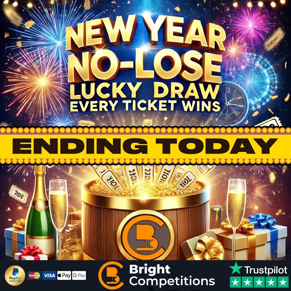 This competition is open to GB residents aged 18 or over. You can enter this competition up to 100 times. This competition will close at 8:30 pm on January 1, 2026. The LIVE draw for this competition will be at 9:00 pm on January 1, 2026. You can watch the draw LIVE on Facebook, YouTube and Instagram. On entering the competition / placing your order you will receive your ticket numbers via email. These will also be visible on the My Account section of our website. We will also be posting updates on this competition and future competitions on our Facebook page so make sure you are following and our posts are set to show at the top of your newsfeed! If entering our competitions either by post or online please ensure you have read and agree to our terms and conditions, if your entries do not comply with the terms they will not be included in the draw. Please note you must sign up for an account before making your entry! Entries without an account cannot be processed. You must add your billing address to your account in order for your entries to be processed. To enter for free, please see our terms and conditions The Winner hereby agrees that all Prizes are subject to and are conditional on the terms and conditions of the Promoter, Prize provider, manufacturer and/or supplier and/or anyone that is involved in the provision or delivery of the Prize to the Winner.