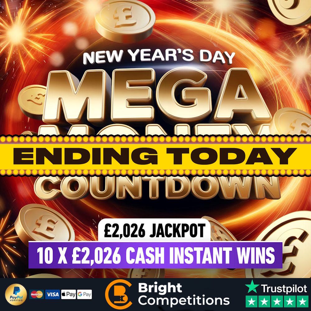 This competition is open to GB residents aged 18 or over. You can enter this competition up to 500 times. This competition will close at 8:30 pm on January 1, 2026. The LIVE draw for this competition will be at 9:00 pm on January 1, 2026. You can watch the draw LIVE on Facebook, YouTube and Instagram. On entering the competition / placing your order you will receive your ticket numbers via email. These will also be visible on the My Account section of our website. We will also be posting updates on this competition and future competitions on our Facebook page so make sure you are following and our posts are set to show at the top of your newsfeed! If entering our competitions either by post or online please ensure you have read and agree to our terms and conditions, if your entries do not comply with the terms they will not be included in the draw. Please note you must sign up for an account before making your entry! Entries without an account cannot be processed. You must add your billing address to your account in order for your entries to be processed. To enter for free, please see our terms and conditions The Winner hereby agrees that all Prizes are subject to and are conditional on the terms and conditions of the Promoter, Prize provider, manufacturer and/or supplier and/or anyone that is involved in the provision or delivery of the Prize to the Winner.