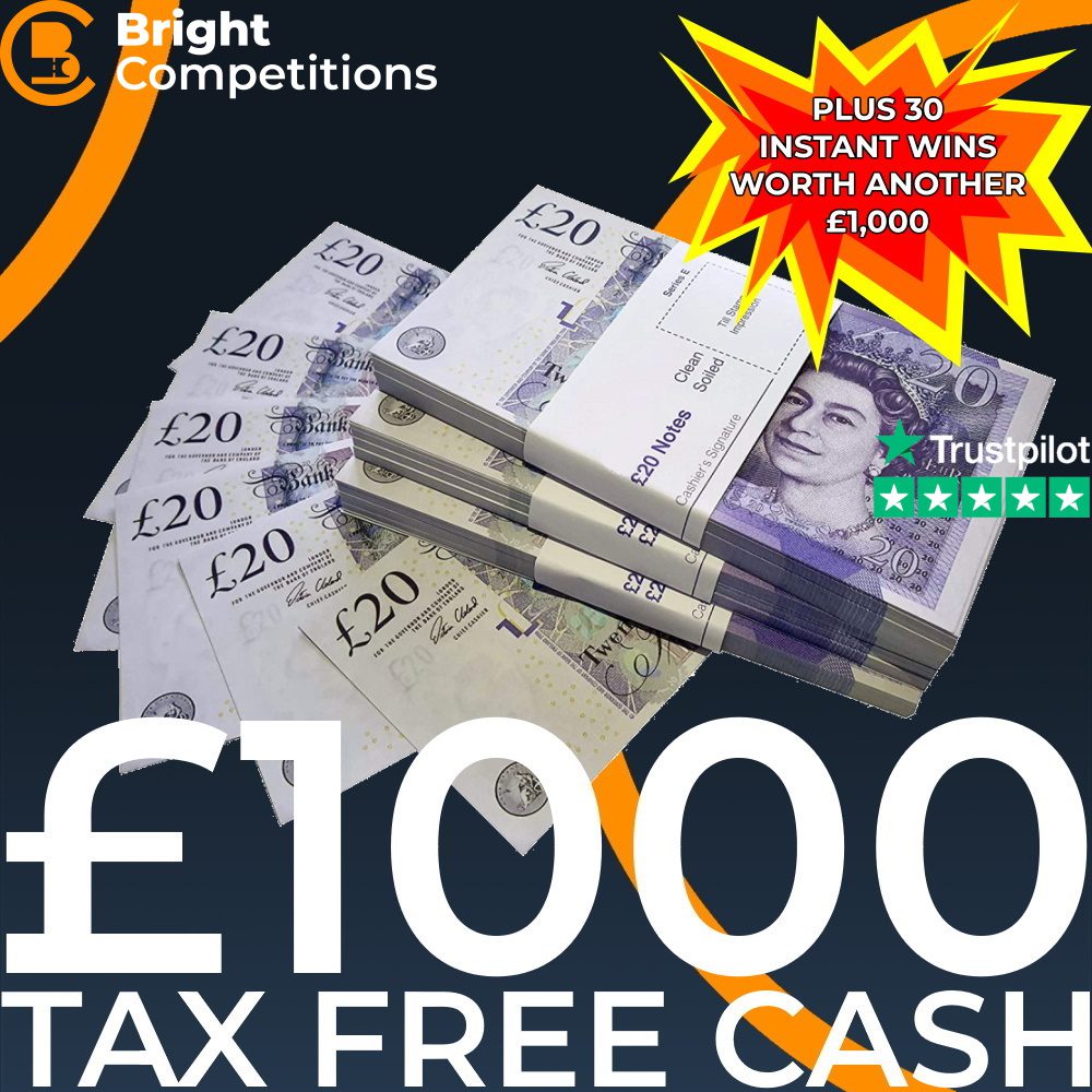 We are offering you the chance to win £1000 Tax Free Cash transferred into your bank account for just 99p! GUARANTEED Draw 21/5/23 @ 8:30pm